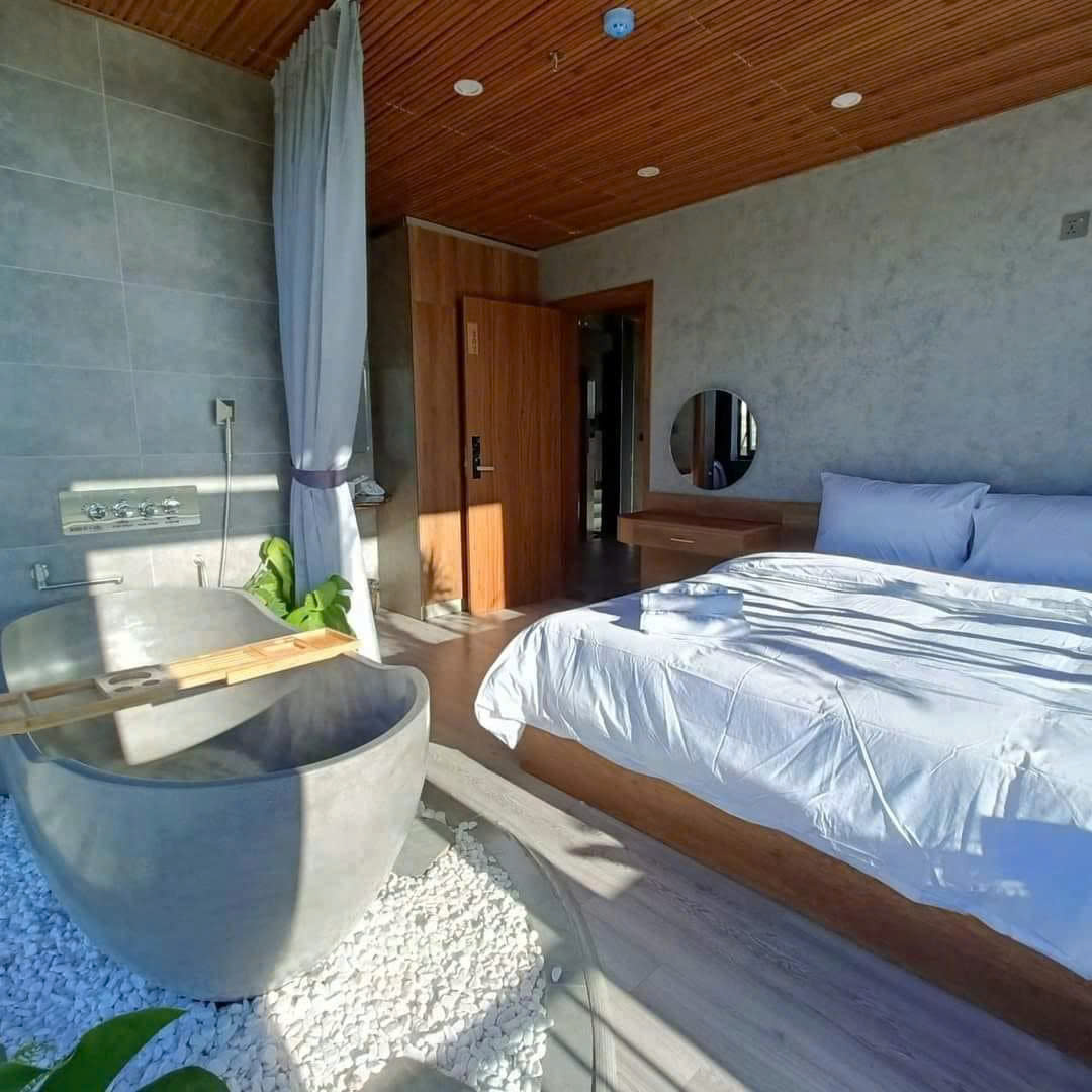 Immerse yourself in the artistic elegance of our homestay, highlighted by the unique textures of PUKACO effect paint. This sophisticated design creates a warm and inviting atmosphere, making every corner the perfect backdrop for your relaxation.